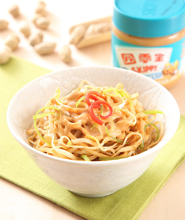 小宽面条 150g 四季宝®柔滑花生酱 50g(加75ml水调匀) 酱油 20ml(加40ml水调匀) 醋 15ml 糖 3g 油、香油 各少许 -